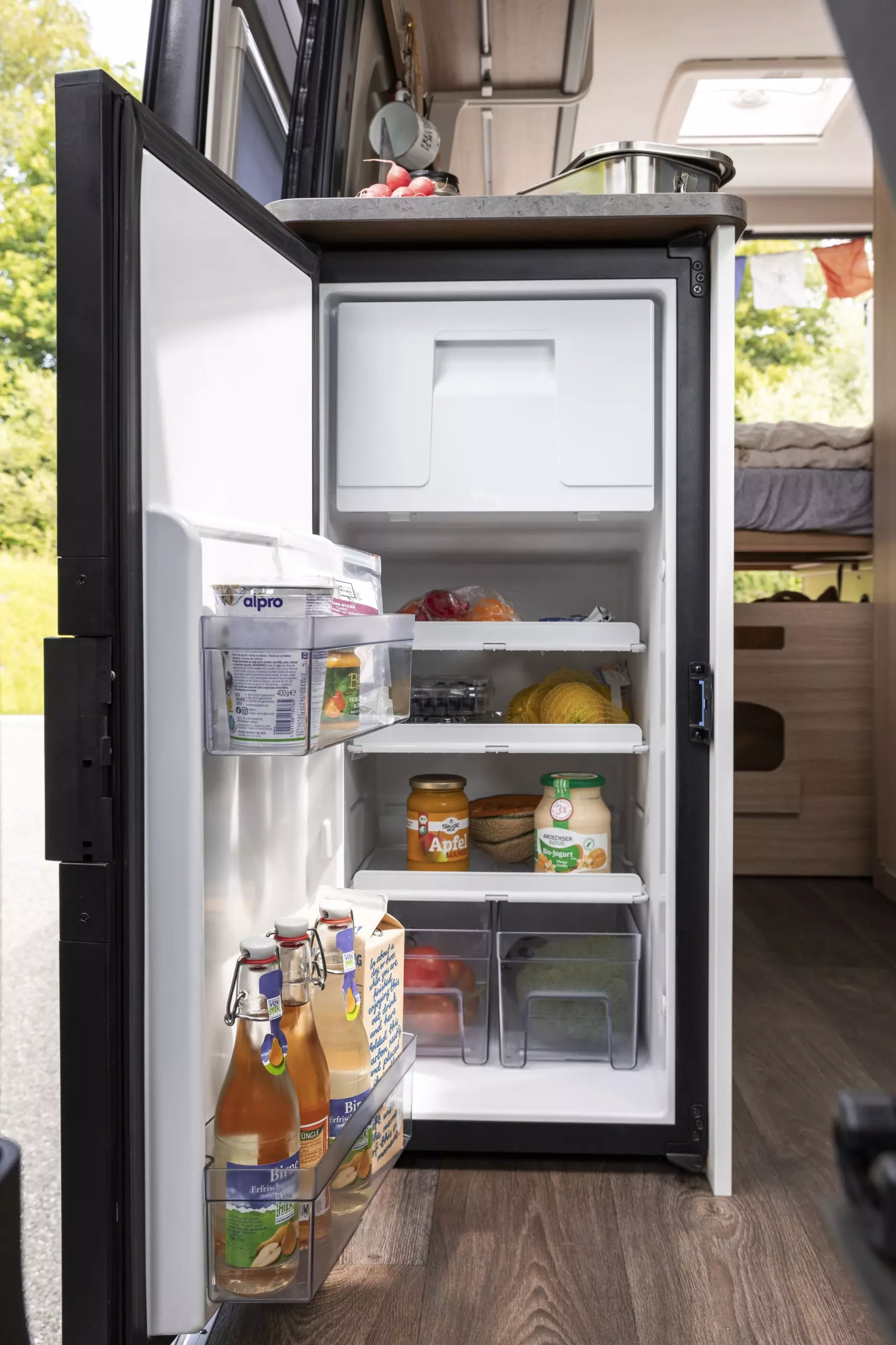 我們的露營車標準配備包括廚房設施、冰箱、淋浴、廁所、暖氣和基本的隨車工具。請參閱我們的「車上設備」和「隨車配備」區塊。